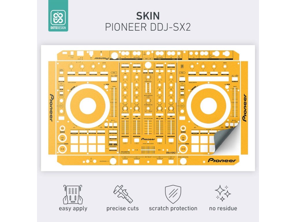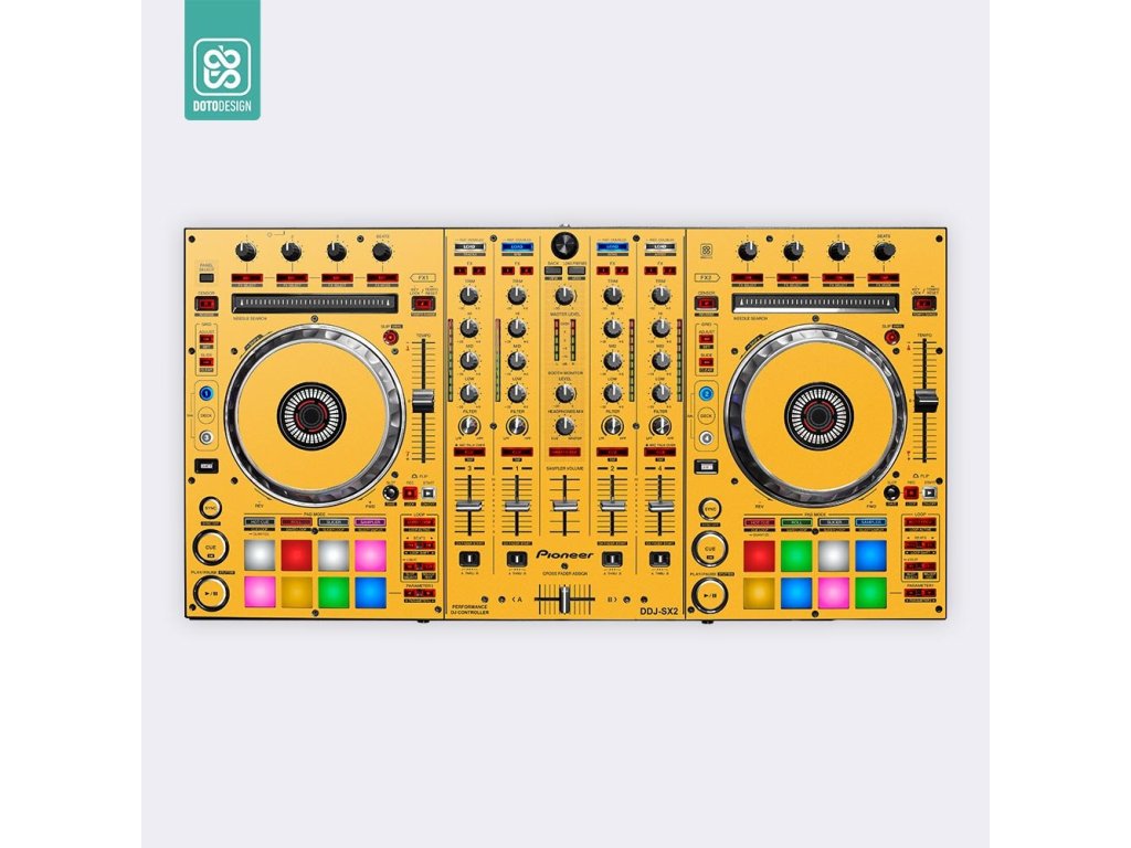 Naklejka na kontroler MIDI Pioneer DDJ-SX2 w wersji FULL COLORS, kolor dark yellow (ciemnożółty).
