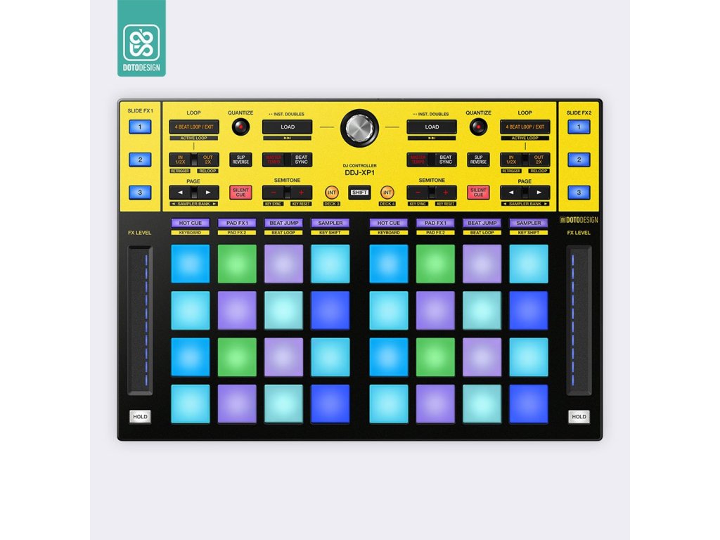 Naklejka na kontroler MIDI Pioneer DDJ-XP1 w wersji FULL COLORS, kolor COLORS DVS, kolor żółty.