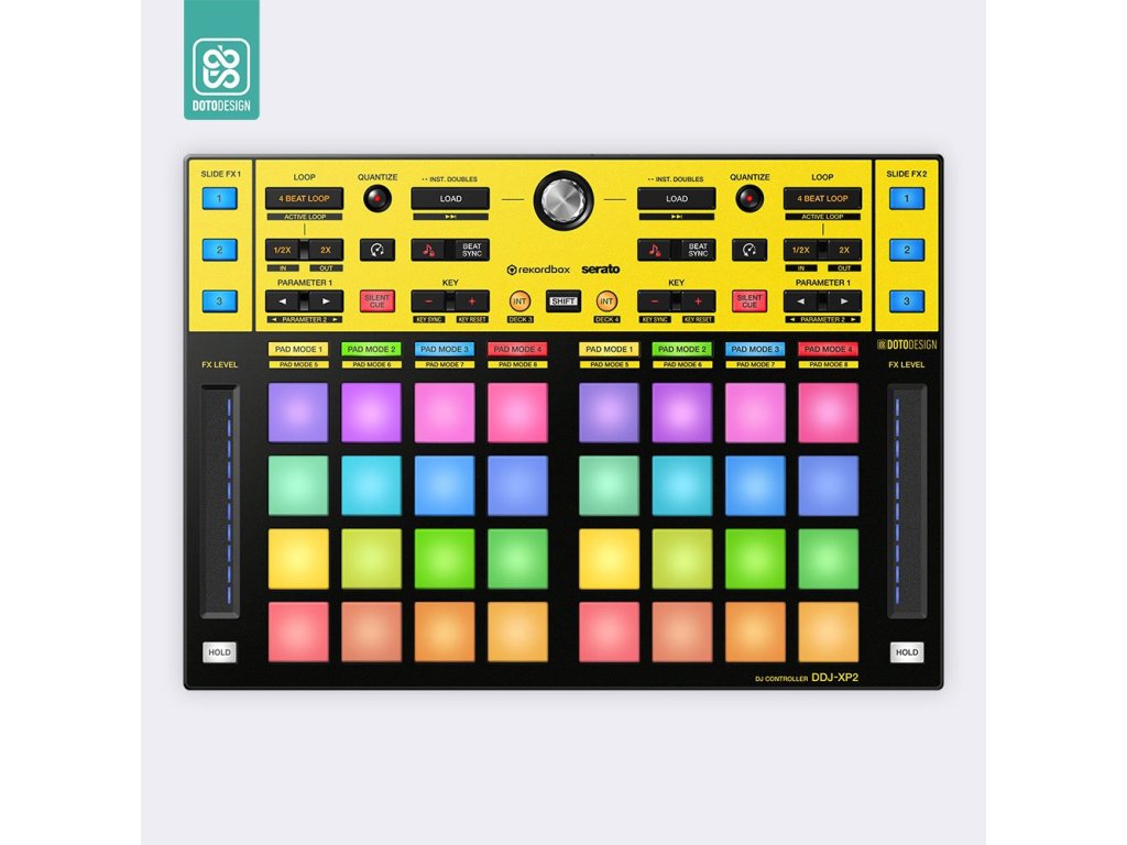 Naklejka skin na kontroler MIDI Pioneer DDJ-XP2 w wersji COLORS DVS, kolor yellow (żółty).