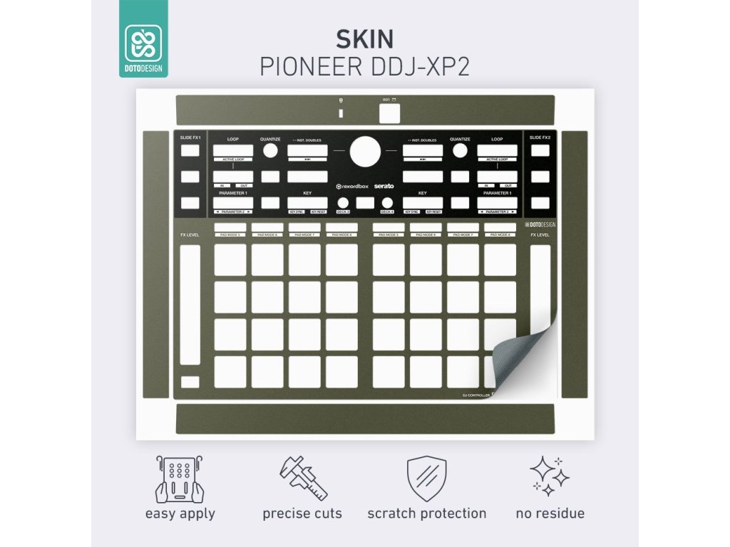 Naklejka na kontroler MIDI Pioneer DDJ-XP2 w wersji FULL COLORS, kolor army green (wojskowa zieleń).