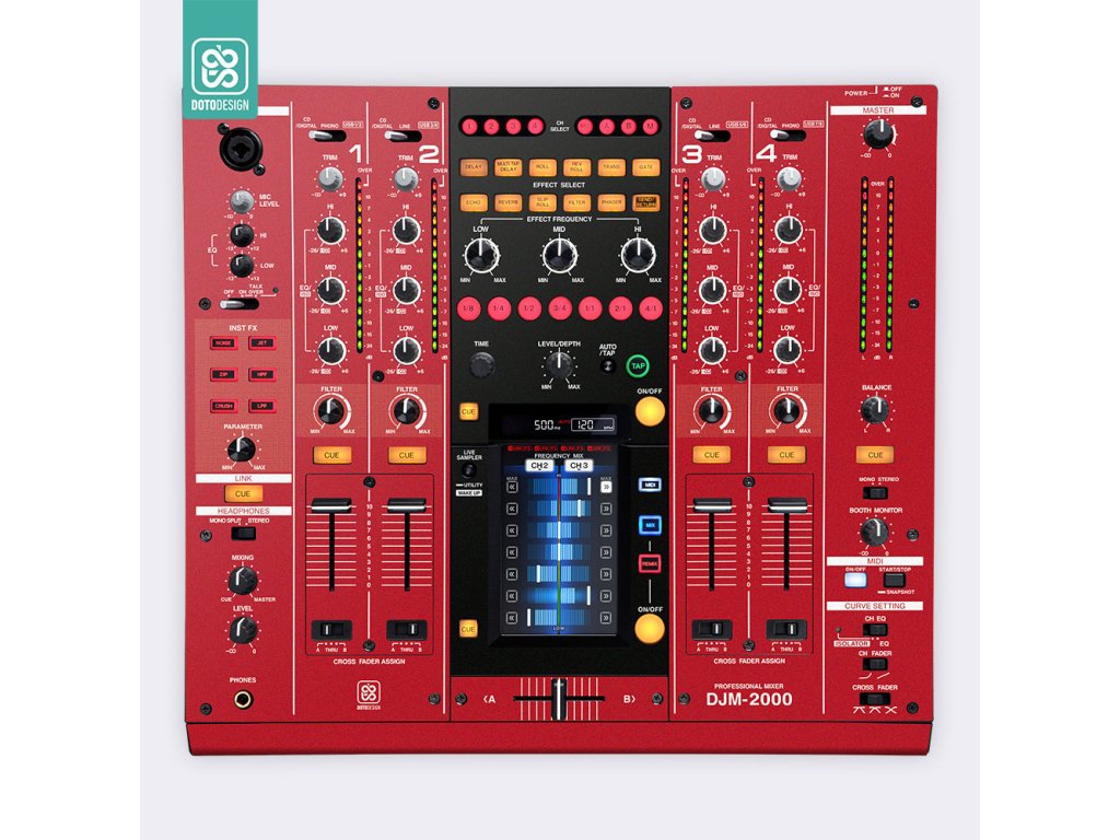Naklejka typu skin do miksera Pioneer DJM-2000 w wersji pełnokolorowej, kolor aurora red (czerwony).