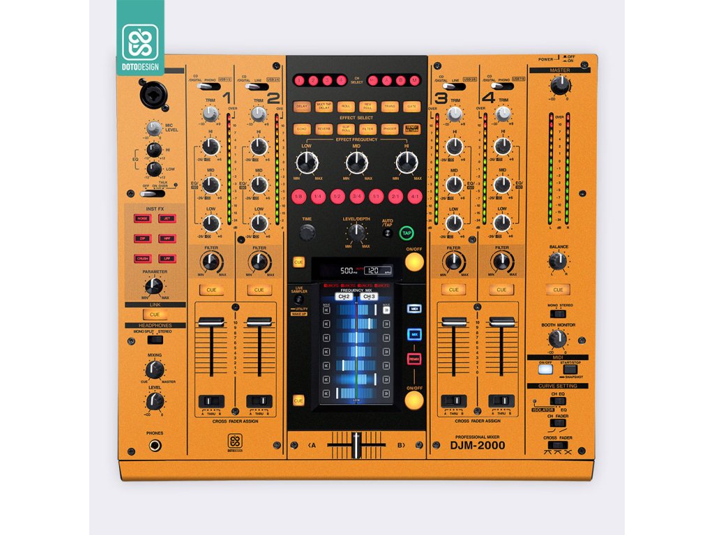 Naklejka typu okleina na mikser Pioneer DJM-2000 w wersji PEŁNOKOLOROWEJ, kolor niestandardowy pomarańczowy (pomarańczowy).