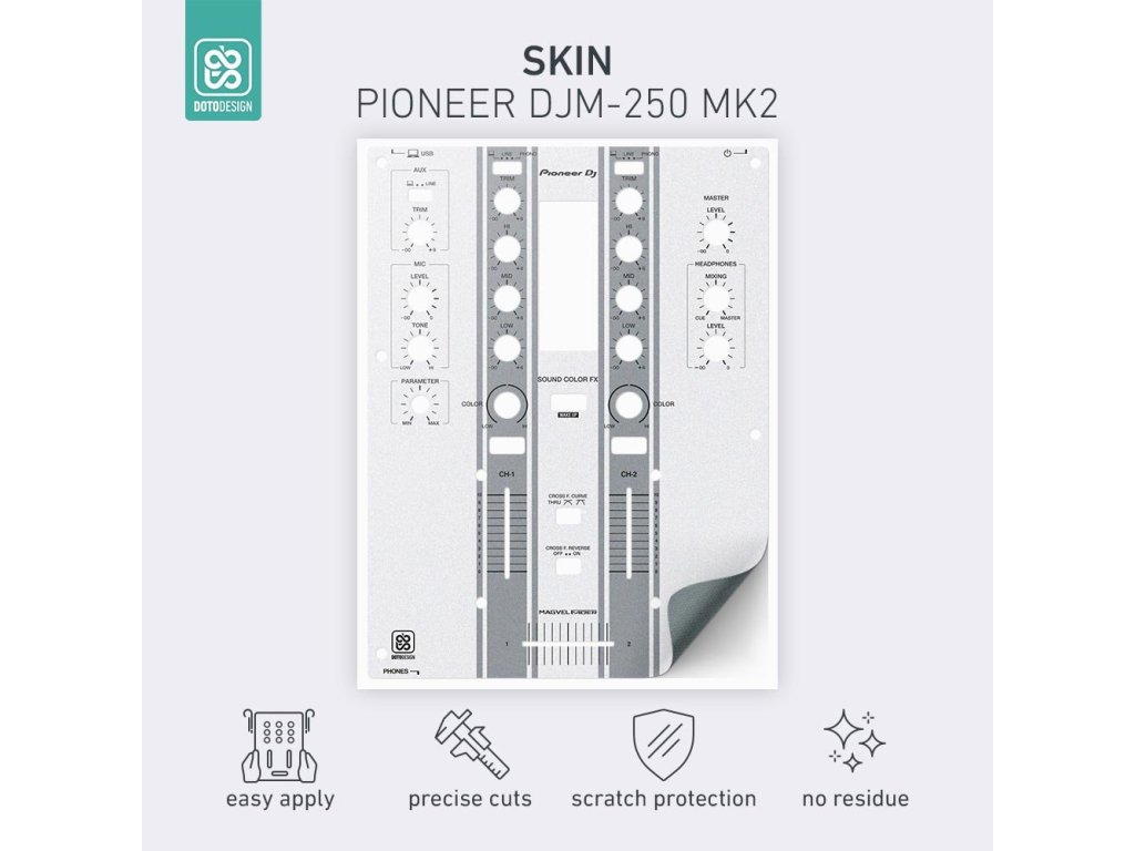 Naklejki Doto Design są idealne do personalizacji wyglądu Twojego sprzętu DJ-skiego (mikserów, gramofonów, odtwarzaczy, kontrolerów). Dostępna jest szeroka gama kolorów i ekskluzywnych wzorów, aby stworzyć niepowtarzalny wygląd. Skórki są precyzyjnie wykonane z materiałów premium, posiadają matową powłokę antyrefleksyjną i chronią Twój sprzęt przed zarysowaniami i zużyciem. Dzięki nowej warstwie adhezyjnej aplikacja jest bardzo prosta, a w przypadku usunięcia skórki na sprzęcie nie pozostaną żadne ślady ani resztki kleju.