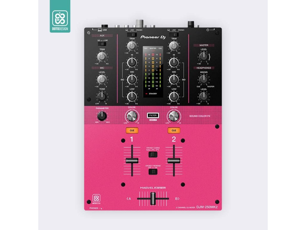 Naklejka na mikser Pioneer DJM-250 MK2 w wersji COLORS DVS, kolor pink (różowy).