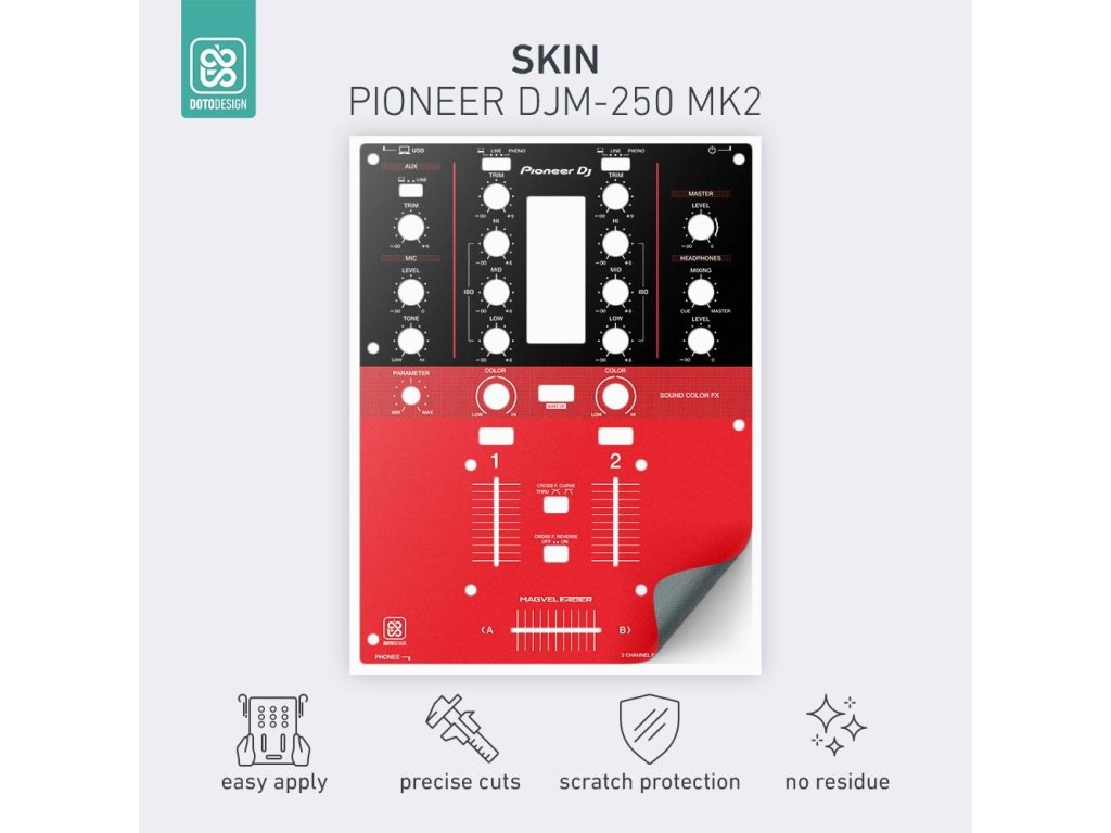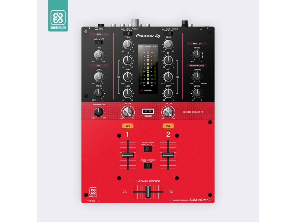 Naklejka na mikser Pioneer DJM-250 MK2 w wersji COLORS DVS, kolor red (czerwony).