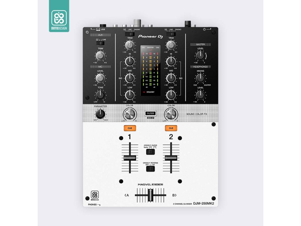 Naklejka na mikser Pioneer DJM-250 MK2 w wersji COLORS DVS, kolor white (biały).