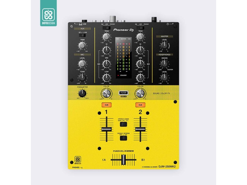 Naklejka na mikser Pioneer DJM-250 MK2 w wersji COLORS DVS, kolor yellow (żółty).