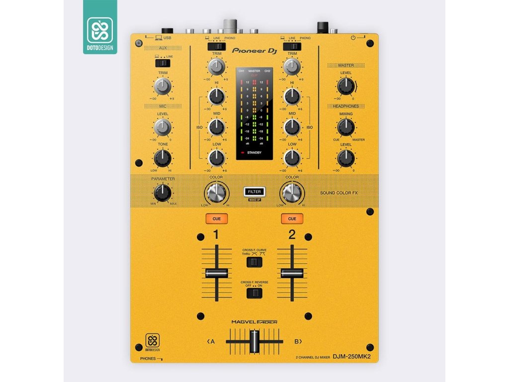 Naklejka na mikser Pioneer DJM-250 MK2 w wersji FULL COLORS, kolor dark yellow (ciemnożółty).