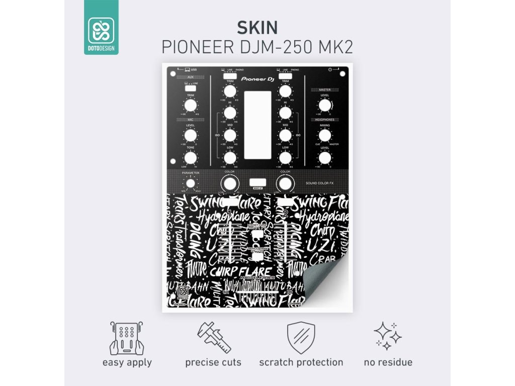 Naklejki Doto Design są idealne do personalizacji wyglądu Twojego sprzętu DJ-skiego (mikserów, gramofonów, odtwarzaczy, kontrolerów). Dostępna jest szeroka gama kolorów i ekskluzywnych wzorów, aby stworzyć niepowtarzalny wygląd. Skórki są precyzyjnie wykonane z materiałów premium, posiadają matową powłokę antyrefleksyjną i chronią Twój sprzęt przed zarysowaniami i zużyciem. Dzięki nowej warstwie adhezyjnej aplikacja jest bardzo prosta, a w przypadku usunięcia skórki na sprzęcie nie pozostaną żadne ślady ani resztki kleju.