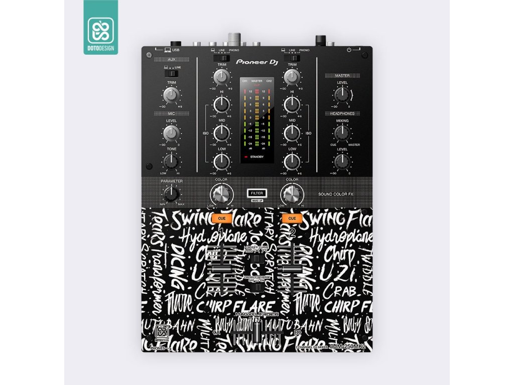 Naklejka na panel mikserski Pioneer DJM-250 MK2 w stylu SCRATCH STYLE, kolor black (czarny).