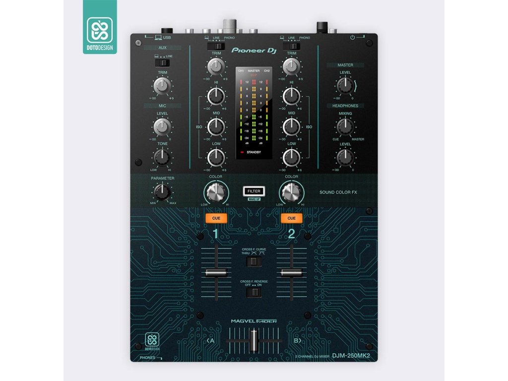 Naklejka na mikser Pioneer DJM-250 MK2 w wersji TECH, inspirowana światem elektroniki w futurystycznym stylu. Barva light blue (jasnoniebieski).