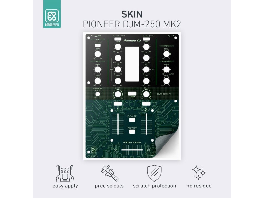 Naklejki Doto Design są idealne do personalizacji wyglądu Twojego sprzętu DJ-skiego (mikserów, gramofonów, odtwarzaczy, kontrolerów). Dostępna jest szeroka gama kolorów i ekskluzywnych wzorów, aby stworzyć niepowtarzalny wygląd. Skórki są precyzyjnie wykonane z materiałów premium, posiadają matową powłokę antyrefleksyjną i chronią Twój sprzęt przed zarysowaniami i zużyciem. Dzięki nowej warstwie adhezyjnej aplikacja jest bardzo prosta, a w przypadku usunięcia skórki na sprzęcie nie pozostaną żadne ślady ani resztki kleju.