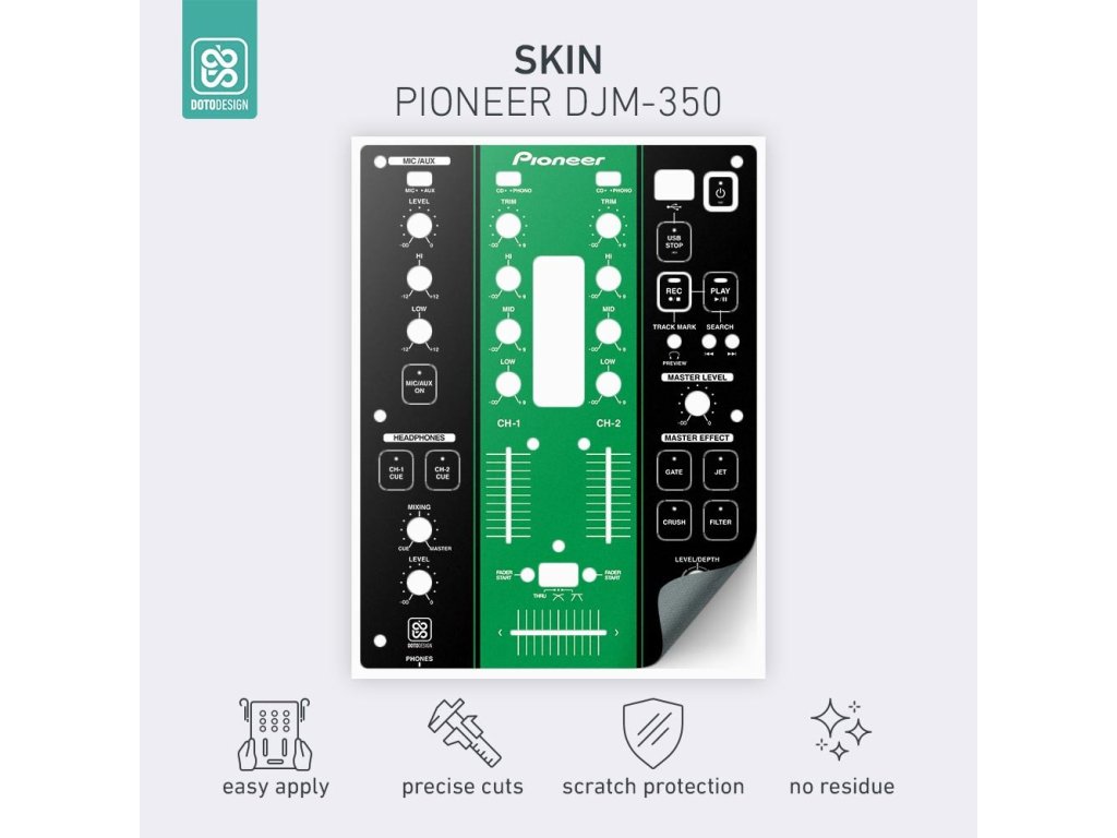 Naklejki Doto Design są idealne do personalizacji wyglądu Twojego sprzętu DJ-skiego (mikserów, gramofonów, odtwarzaczy, kontrolerów). Dostępna jest szeroka gama kolorów i ekskluzywnych wzorów, aby stworzyć niepowtarzalny wygląd. Skórki są precyzyjnie wykonane z materiałów premium, posiadają matową powłokę antyrefleksyjną i chronią Twój sprzęt przed zarysowaniami i zużyciem. Dzięki nowej warstwie adhezyjnej aplikacja jest bardzo prosta, a w przypadku usunięcia skórki na sprzęcie nie pozostaną żadne ślady ani resztki kleju.