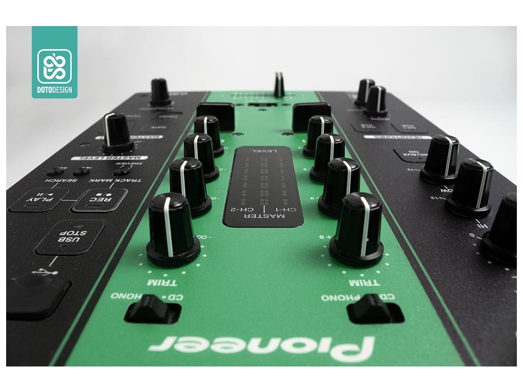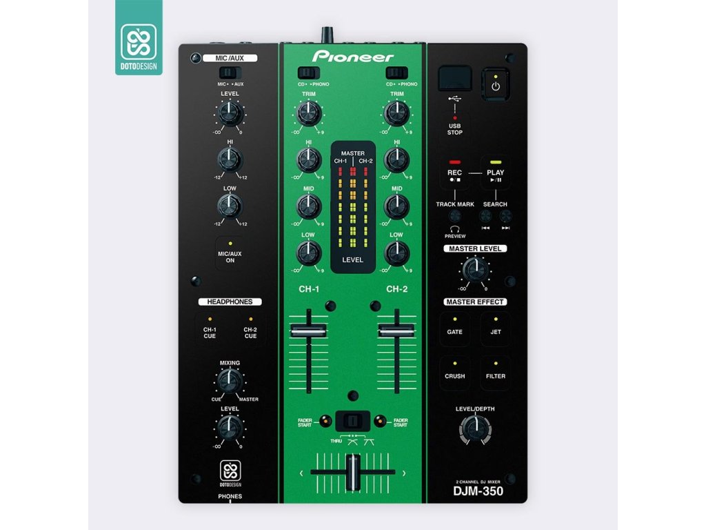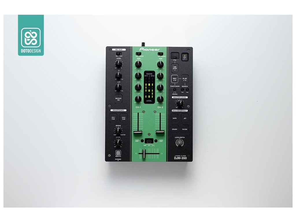 Naklejka na mikser Pioneer DJM-350 w wersji COLORS, kolor green (zielony).