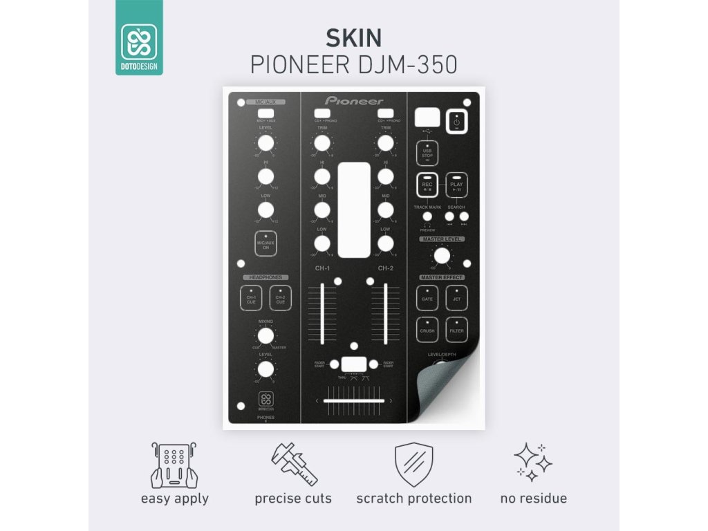 Naklejki Doto Design są idealne do personalizacji wyglądu Twojego sprzętu DJ-skiego (mikserów, gramofonów, odtwarzaczy, kontrolerów). Dostępna jest szeroka gama kolorów i ekskluzywnych wzorów, aby stworzyć niepowtarzalny wygląd. Skórki są precyzyjnie wykonane z materiałów premium, posiadają matową powłokę antyrefleksyjną i chronią Twój sprzęt przed zarysowaniami i zużyciem. Dzięki nowej warstwie adhezyjnej aplikacja jest bardzo prosta, a w przypadku usunięcia skórki na sprzęcie nie pozostaną żadne ślady ani resztki kleju.