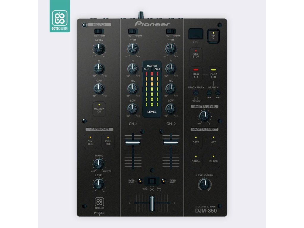 Naklejka na mikser Pioneer DJM-350 w wersji DAY & NIGHT, kolor czarny.