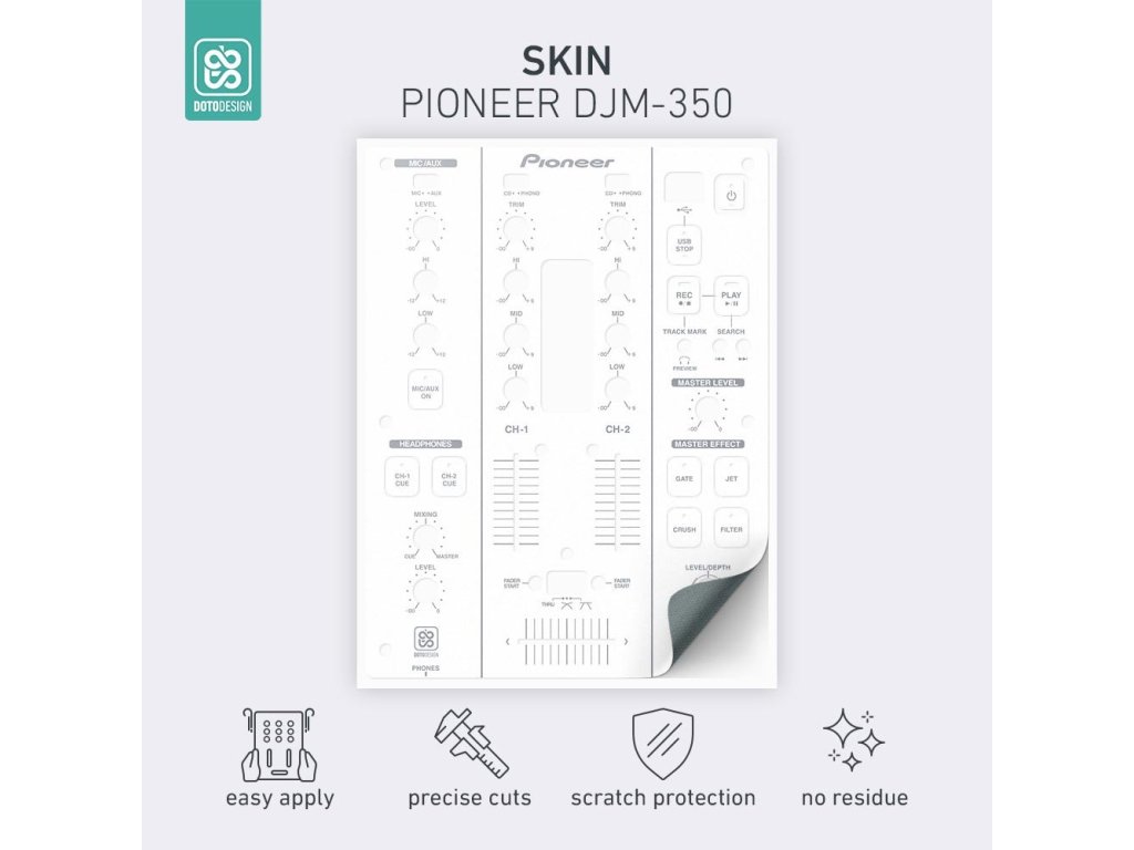 Naklejki Doto Design są idealne do personalizacji wyglądu Twojego sprzętu DJ-skiego (mikserów, gramofonów, odtwarzaczy, kontrolerów). Dostępna jest szeroka gama kolorów i ekskluzywnych wzorów, aby stworzyć niepowtarzalny wygląd. Skórki są precyzyjnie wykonane z materiałów premium, posiadają matową powłokę antyrefleksyjną i chronią Twój sprzęt przed zarysowaniami i zużyciem. Dzięki nowej warstwie adhezyjnej aplikacja jest bardzo prosta, a w przypadku usunięcia skórki na sprzęcie nie pozostaną żadne ślady ani resztki kleju.