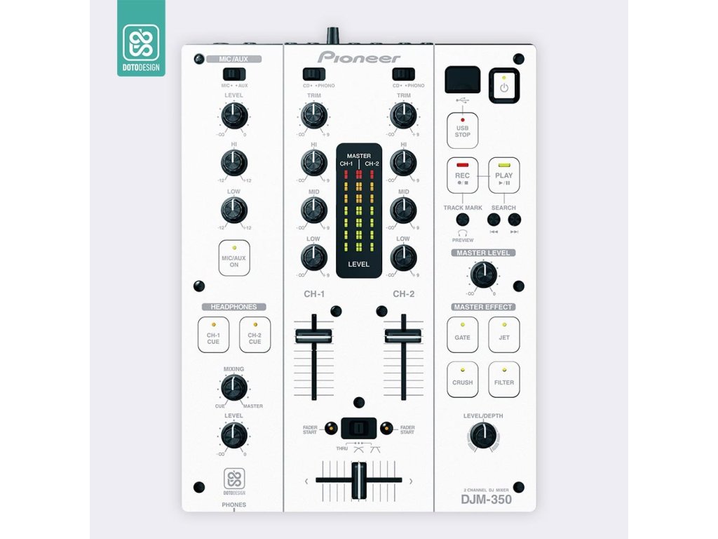 Naklejka na mikser Pioneer DJM-350 w wersji DAY & NIGHT, kolor biały.