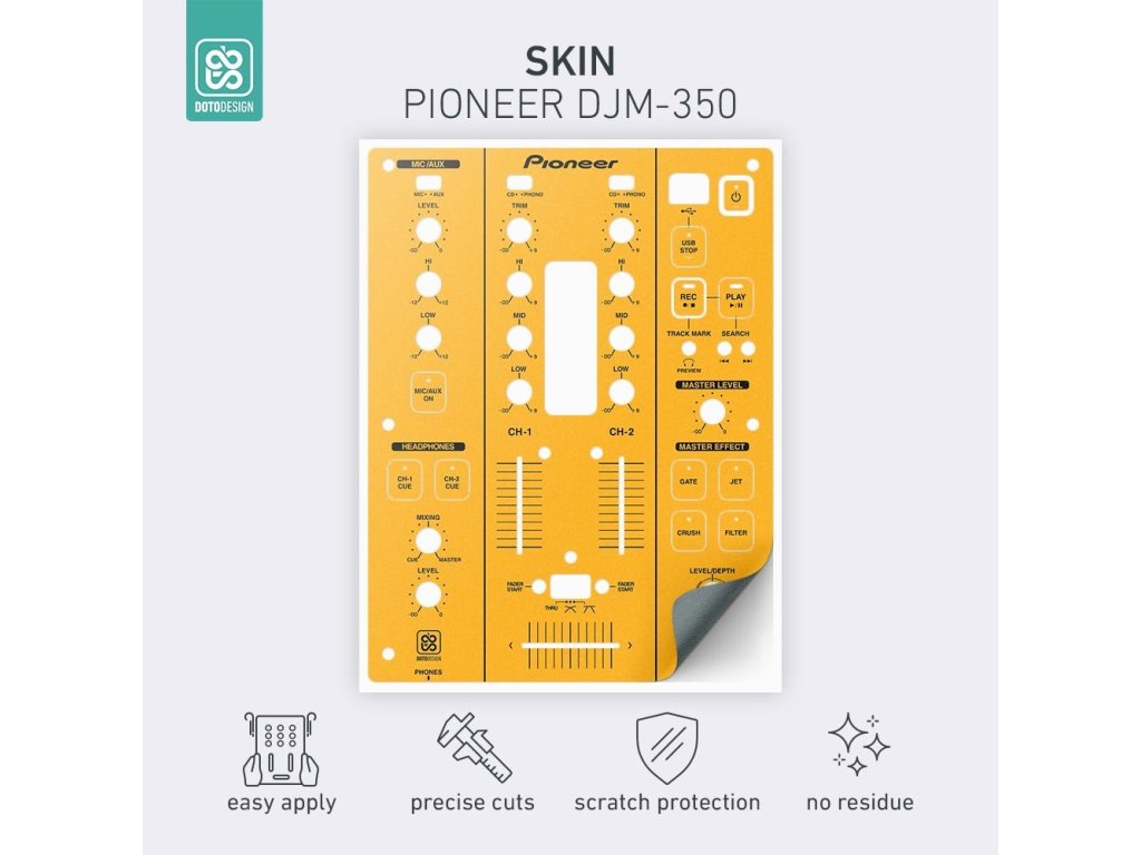 Naklejka na panel mikserski Pioneer DJM-350 w wersji FULL COLORS, kolor dark yellow (ciemnożółty).