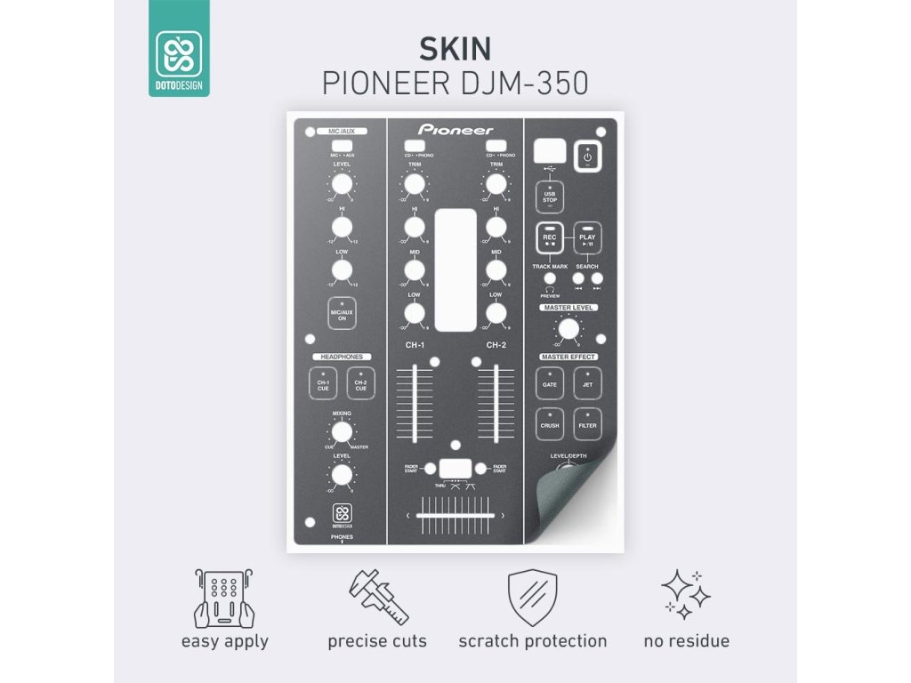 Naklejka na panel mikserski Pioneer DJM-350 w wersji FULL COLORS, kolor graphite grey (grafitowa szarość).