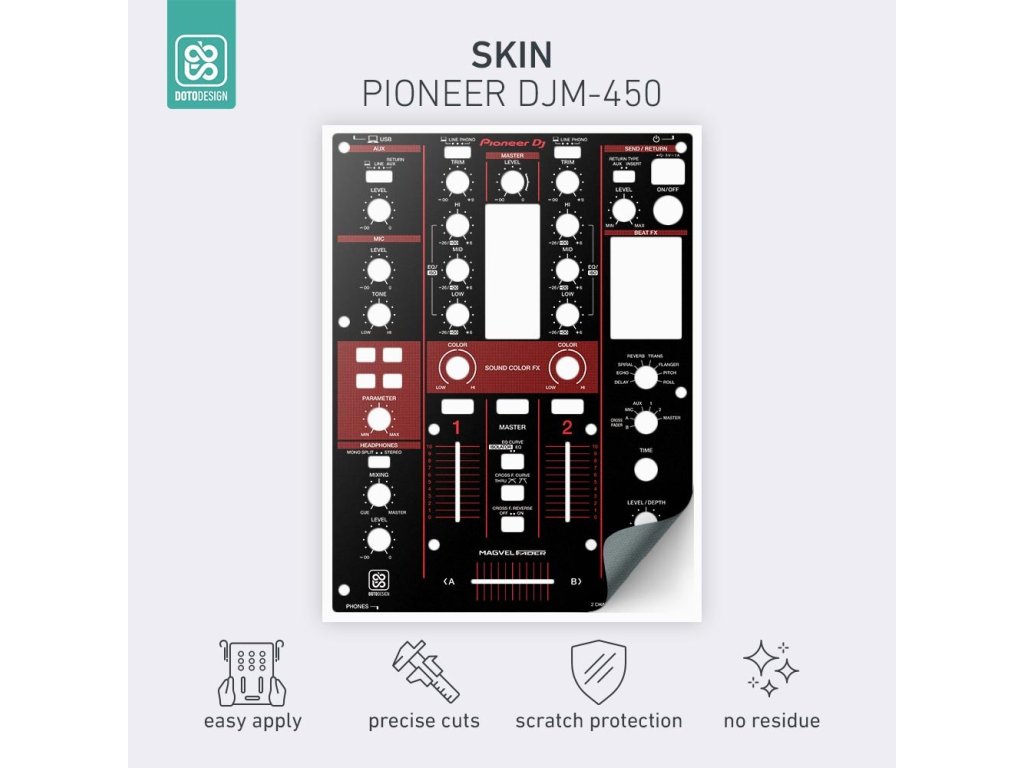 Naklejka skin na mikser Pioneer DJM-450 w wersji COLORS, kolor red (czerwony).