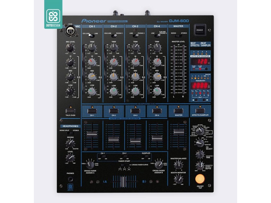 Naklejka na mikser Pioneer DJM-600 w wersji COLORS, kolor blue (niebieski).