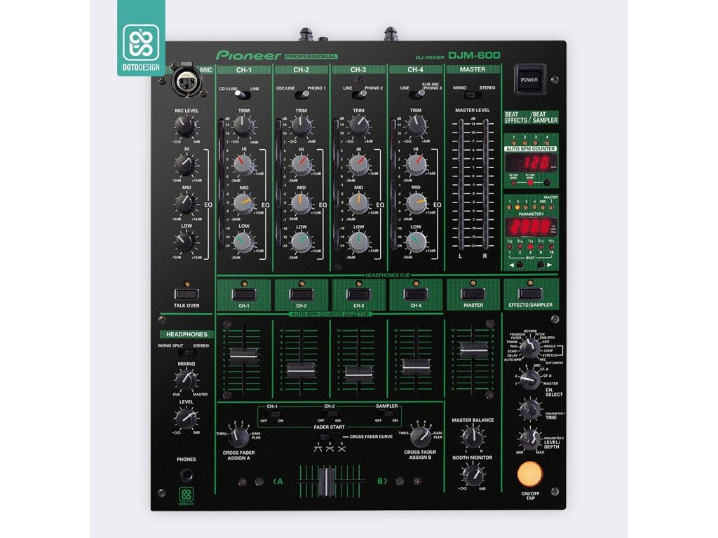Naklejka na mikser Pioneer DJM-600 w wersji COLORS, kolor green (zielony).