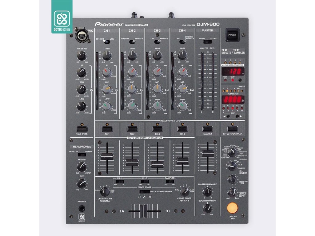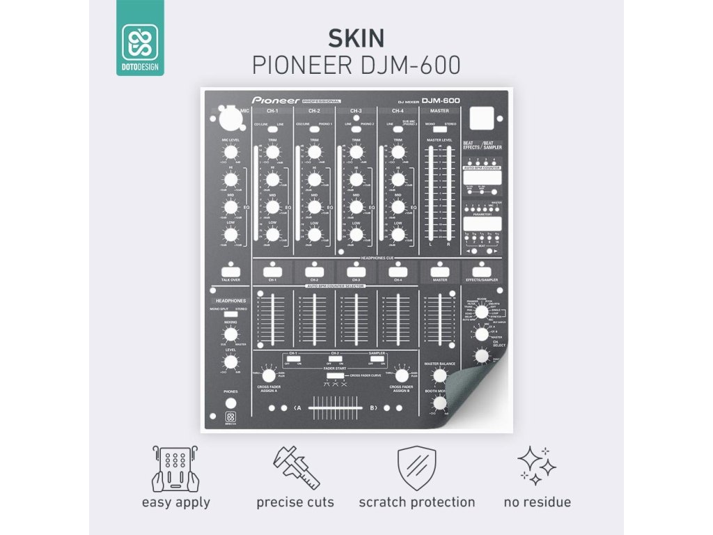 Naklejka na mikser Pioneer DJM-600 w wersji FULL COLORS, kolor graphite grey (grafitowa szarość).