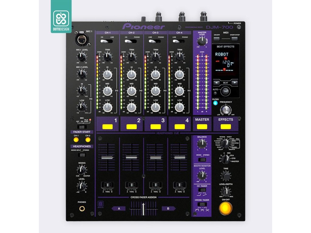 Naklejka na mikser Pioneer DJM-700 w wersji COLORS, kolor purple (fioletowy).