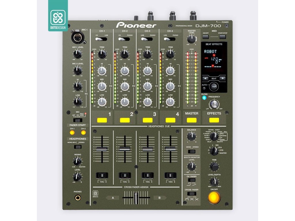 Naklejka na mikser Pioneer DJM-700 w wersji FULL COLORS, kolor army green (wojskowa zieleń).