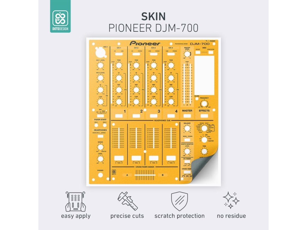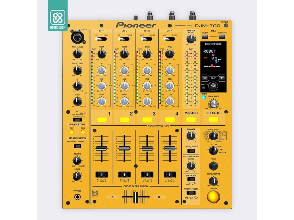 Naklejka na panel mikserski Pioneer DJM-700 w wersji FULL COLORS, kolor dark yelow (ciemnożółty).