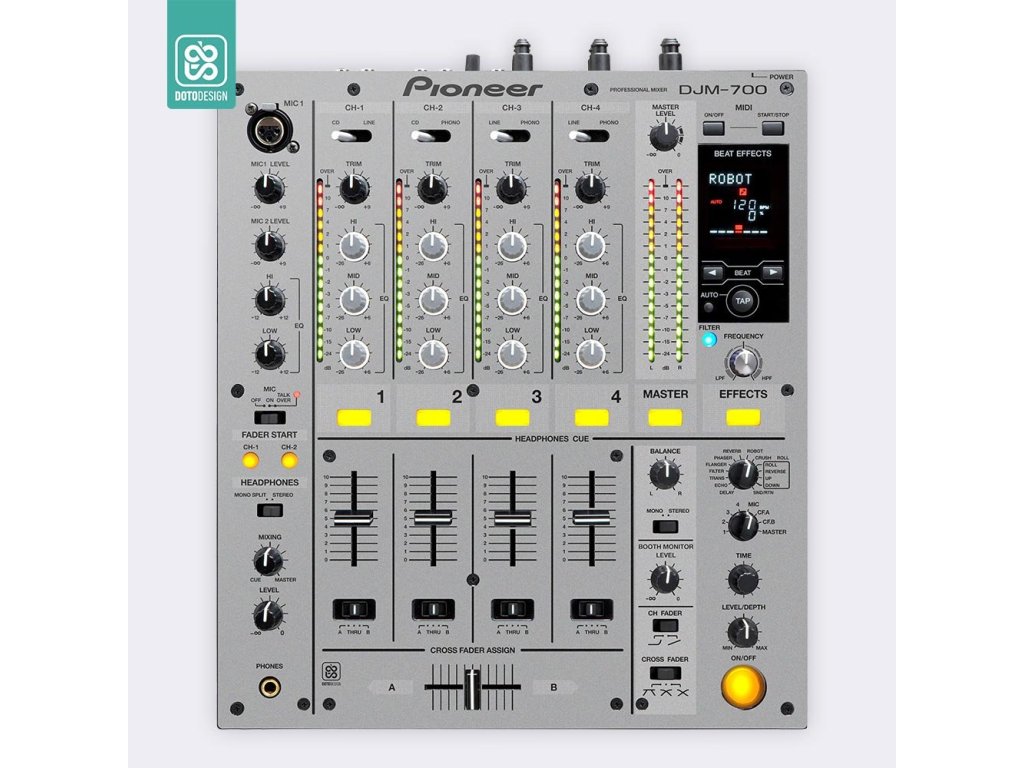 Naklejka na panel mikserski Pioneer DJM-700 w wersji FULL COLORS, kolor nardo grey (szary).