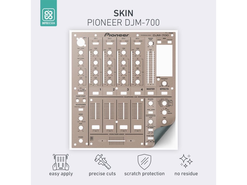 Naklejki Doto Design są idealne do personalizacji wyglądu Twojego sprzętu DJ-skiego (mikserów, gramofonów, odtwarzaczy, kontrolerów). Dostępna jest szeroka gama kolorów i ekskluzywnych wzorów, aby stworzyć niepowtarzalny wygląd. Skórki są precyzyjnie wykonane z materiałów premium, posiadają matową powłokę antyrefleksyjną i chronią Twój sprzęt przed zarysowaniami i zużyciem. Dzięki nowej warstwie adhezyjnej aplikacja jest bardzo prosta, a w przypadku usunięcia skórki na sprzęcie nie pozostaną żadne ślady ani resztki kleju.