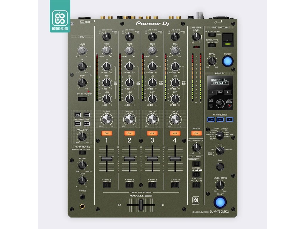 Naklejka na mikser Pioneer DJM-750 MK2 w wersji FULL COLORS, kolor army green (wojskowy zielony).