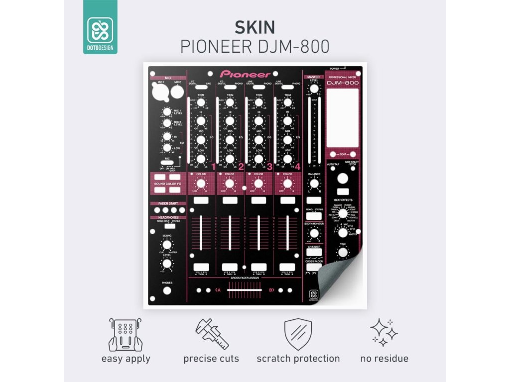 Naklejki Doto Design są idealne do personalizacji wyglądu Twojego sprzętu DJ-skiego (mikserów, gramofonów, odtwarzaczy, kontrolerów). Dostępna jest szeroka gama kolorów i ekskluzywnych wzorów, aby stworzyć niepowtarzalny wygląd. Skórki są precyzyjnie wykonane z materiałów premium, posiadają matową powłokę antyrefleksyjną i chronią Twój sprzęt przed zarysowaniami i zużyciem. Dzięki nowej warstwie adhezyjnej aplikacja jest bardzo prosta, a w przypadku usunięcia skórki na sprzęcie nie pozostaną żadne ślady ani resztki kleju.