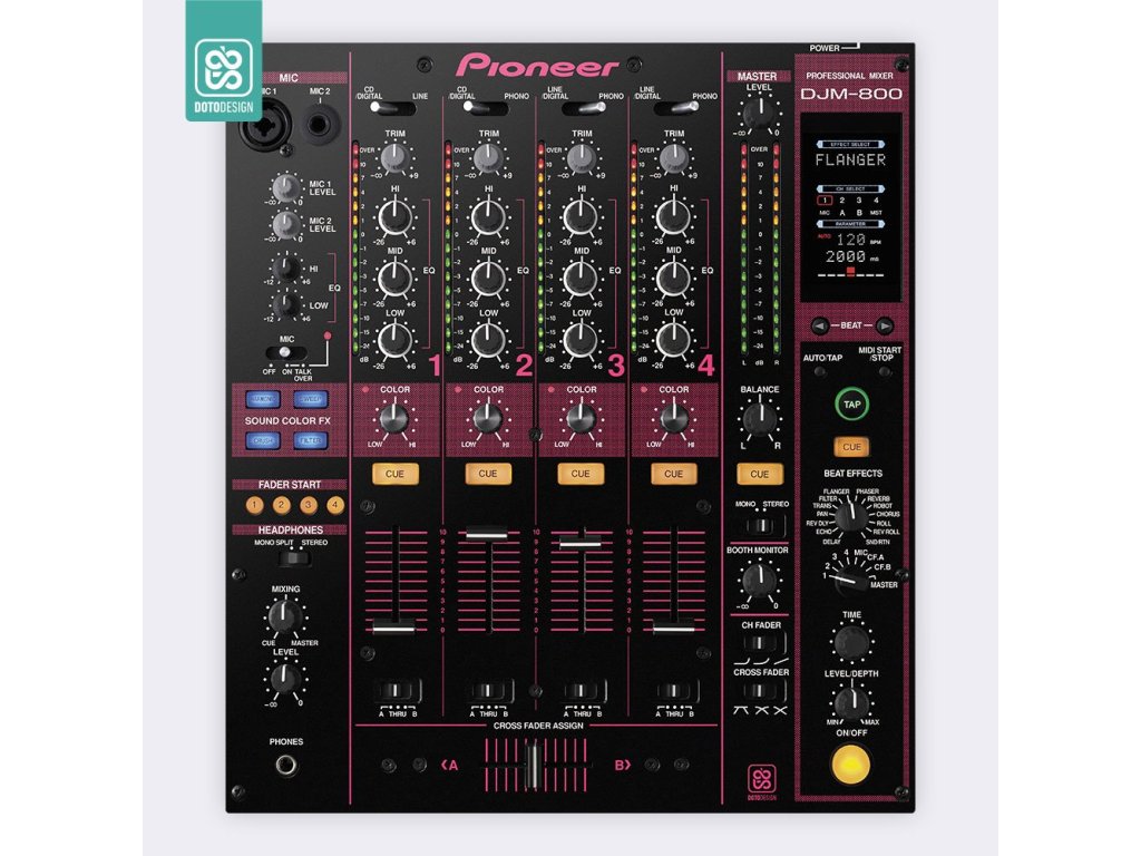 Naklejka na mikser Pioneer DJM-800 w wersji COLORS, kolor pink (różowy).
