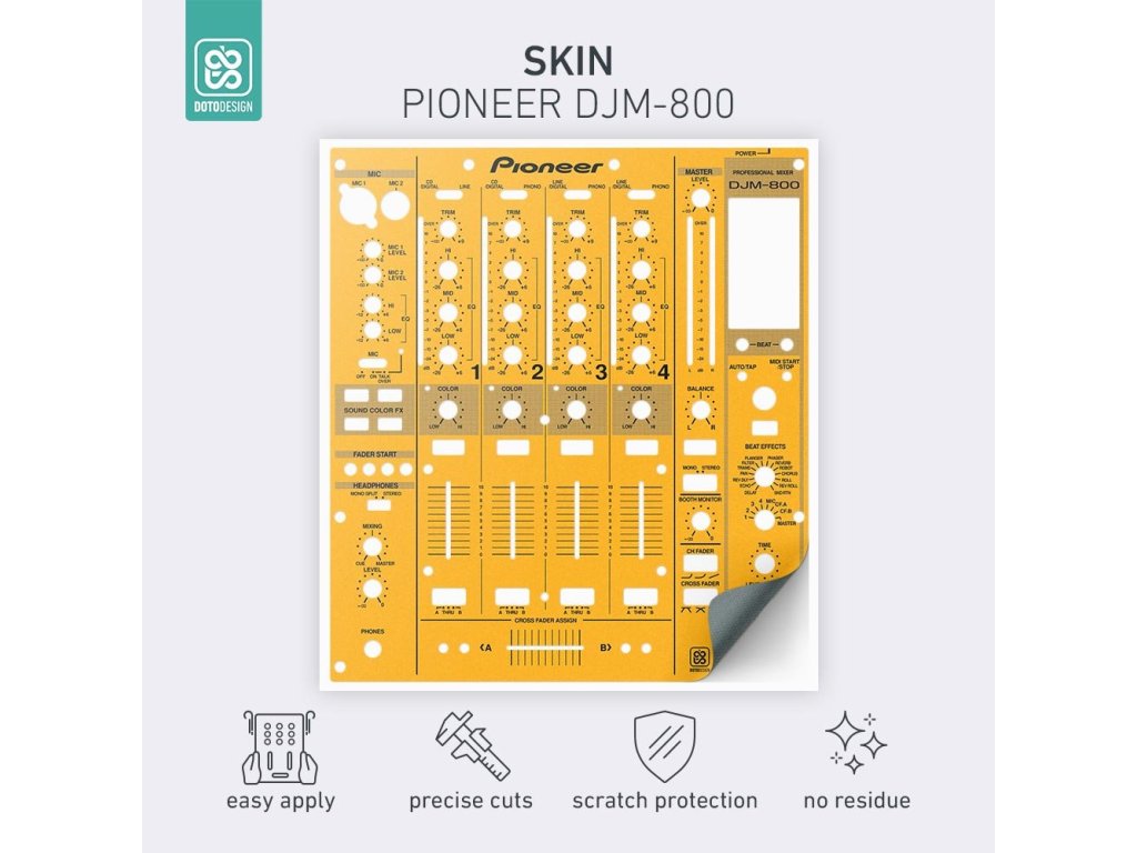 Naklejka na panel mikserski Pioneer DJM-800 w wersji FULL COLORS, kolor dark yellow (ciemnożółty).