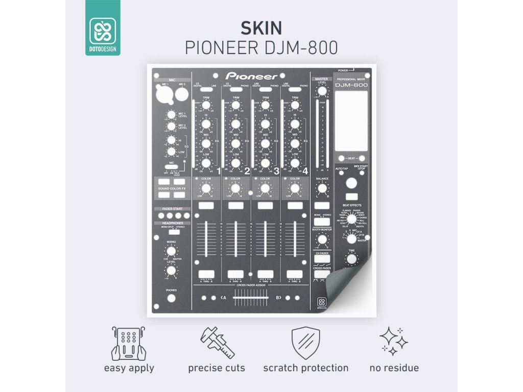 Naklejka na mikser Pioneer DJM-800 w wersji FULL COLORS, kolor graphite grey (grafitowa szarość).