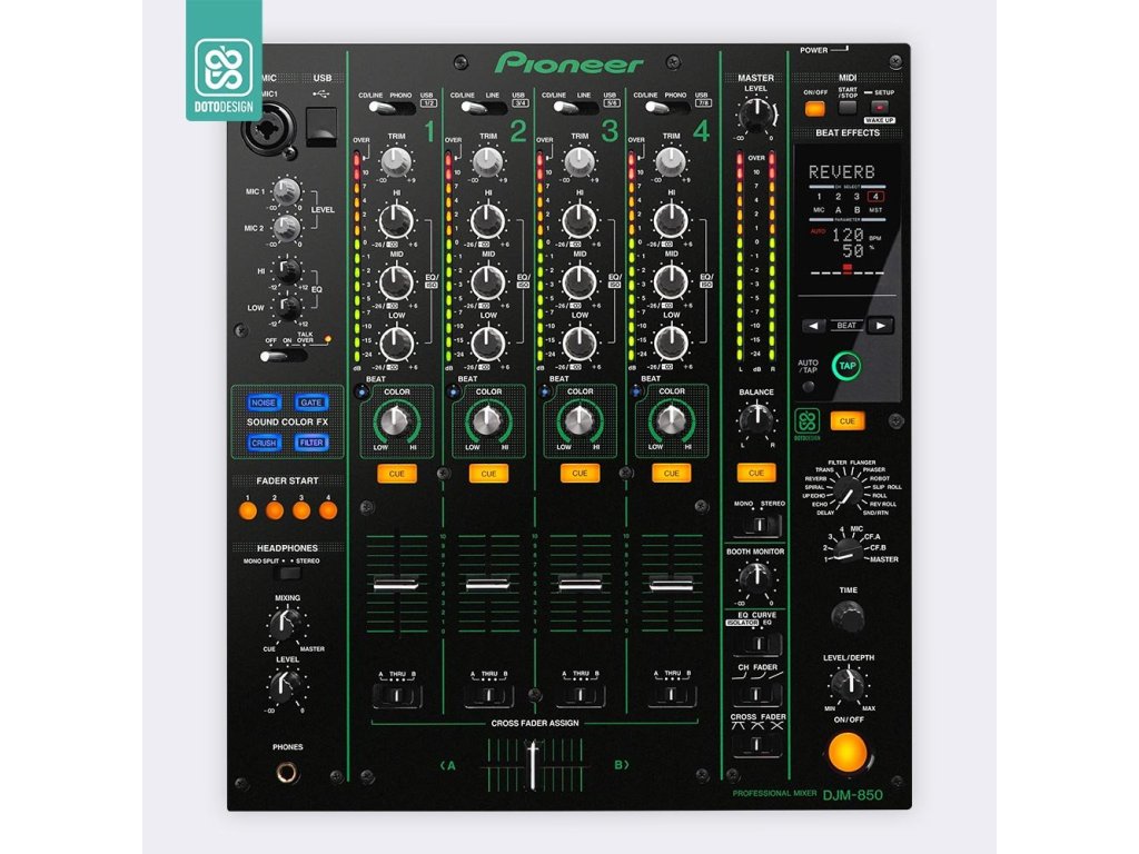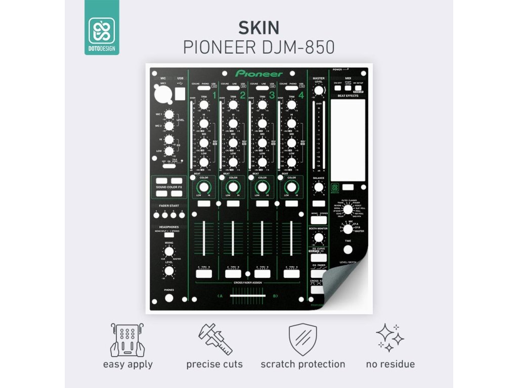 Naklejka na mikser Pioneer DJM-850 w wersji COLORS, kolor zielony.