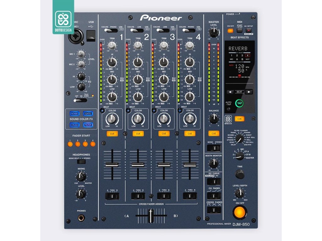 Naklejka na mikser Pioneer DJM-850 w wersji FULL COLORS, kolor midnight blue (północny błękit).