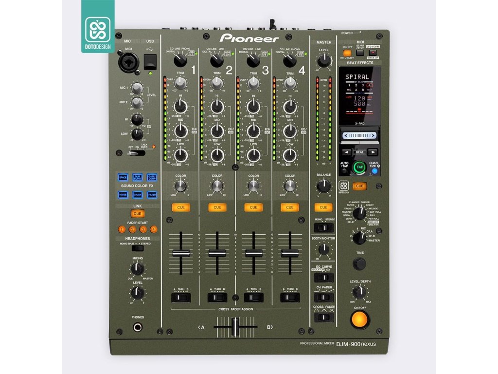 Naklejka na panel mikserski Pioneer DJM-900 NXS w wersji FULL COLORS, kolor army green (wojskowa zieleń).