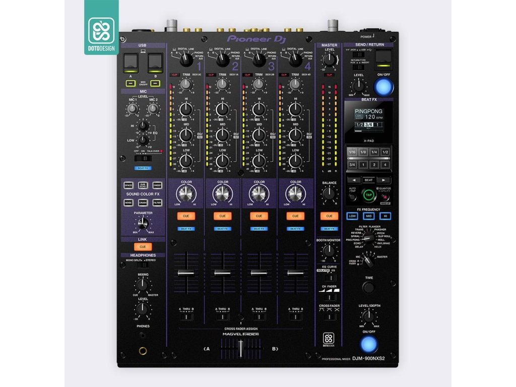 Naklejka na panel mikserski Pioneer DJM-900 NXS2 w wersji COLORS, kolor purple (fioletowy).
