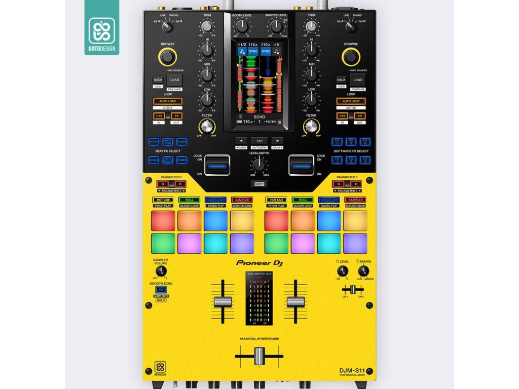 Naklejka na mikser Pioneer DJM-S11 w wersji COLORS DVS, kolor yellow (żółty).
