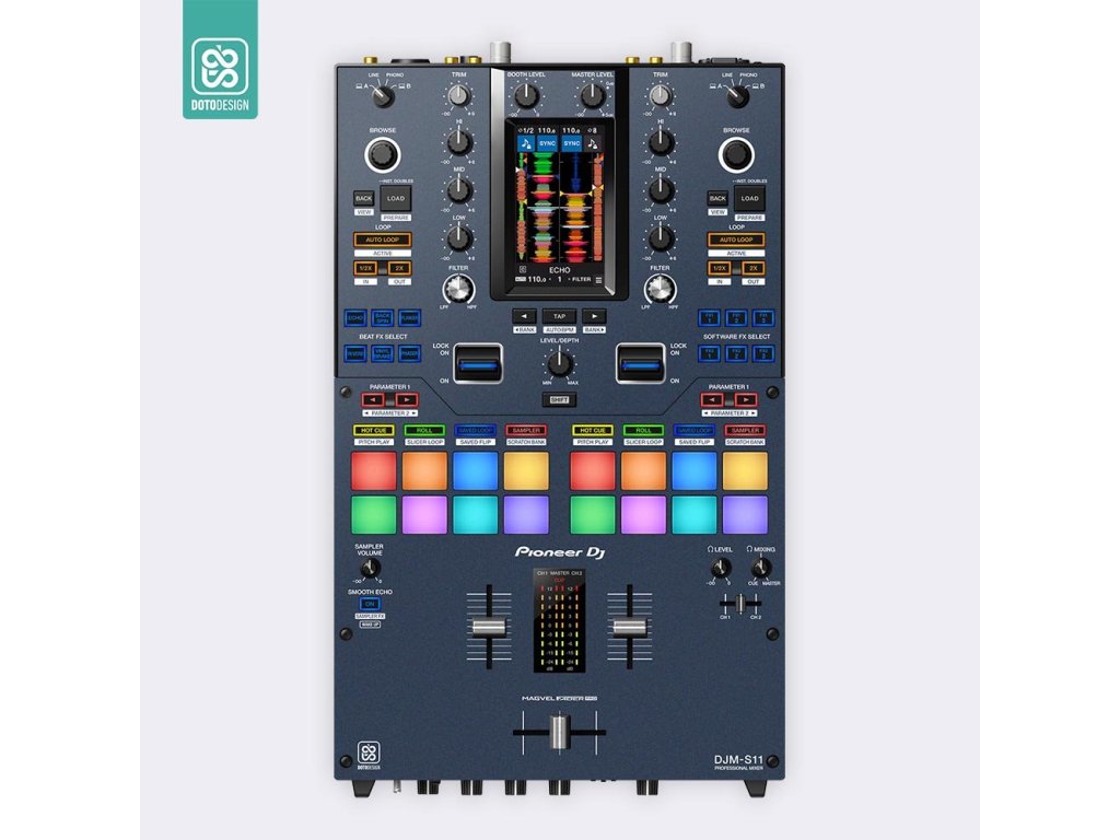 Naklejka na mikser Pioneer DJM-S11 w wersji FULL COLORS, kolor midnight blue (północny błękit).