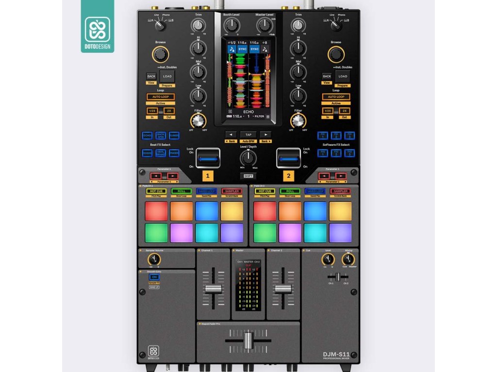 Naklejka na mikser Pioneer DJM-S11 w wersji LIVE, inspirowana popularnym oprogramowaniem dla występów na żywo i producentów DJ. Barva dark (ciemny).