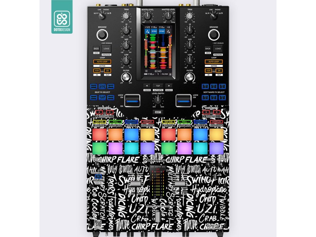 Naklejka na panel mikserski Pioneer DJM-S11 w stylu SCRATCH STYLE, kolor black (czarny).