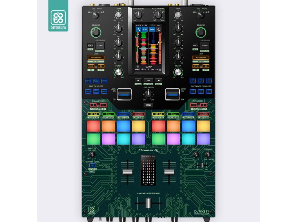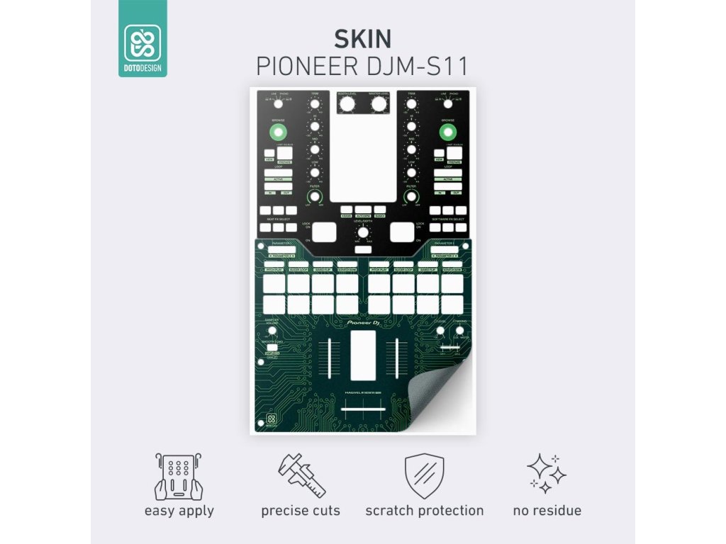 Naklejka na mikser Pioneer DJM-S11 w wersji TECH, inspirowana światem elektroniki w futurystycznym stylu. Kolor light green (jasnozielony).