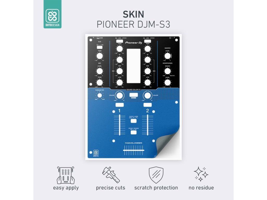 Naklejka na mikser Pioneer DJM-S3 w wersji COLORS DVS, kolor blue (niebieski).