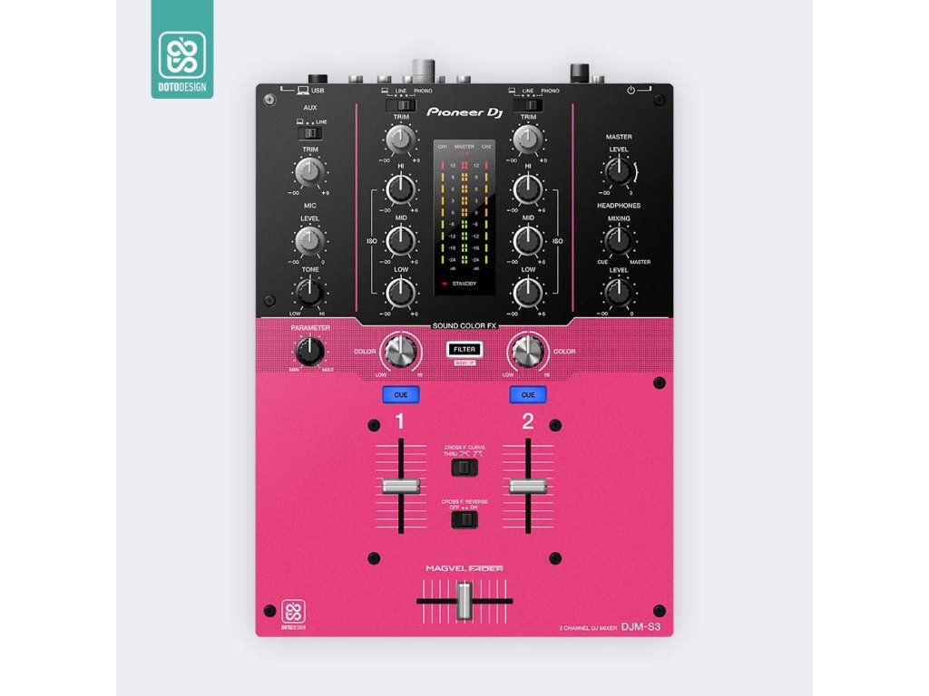 Naklejka na mikser Pioneer DJM-S3 w wersji COLORS DVS, kolor pink (różowy).