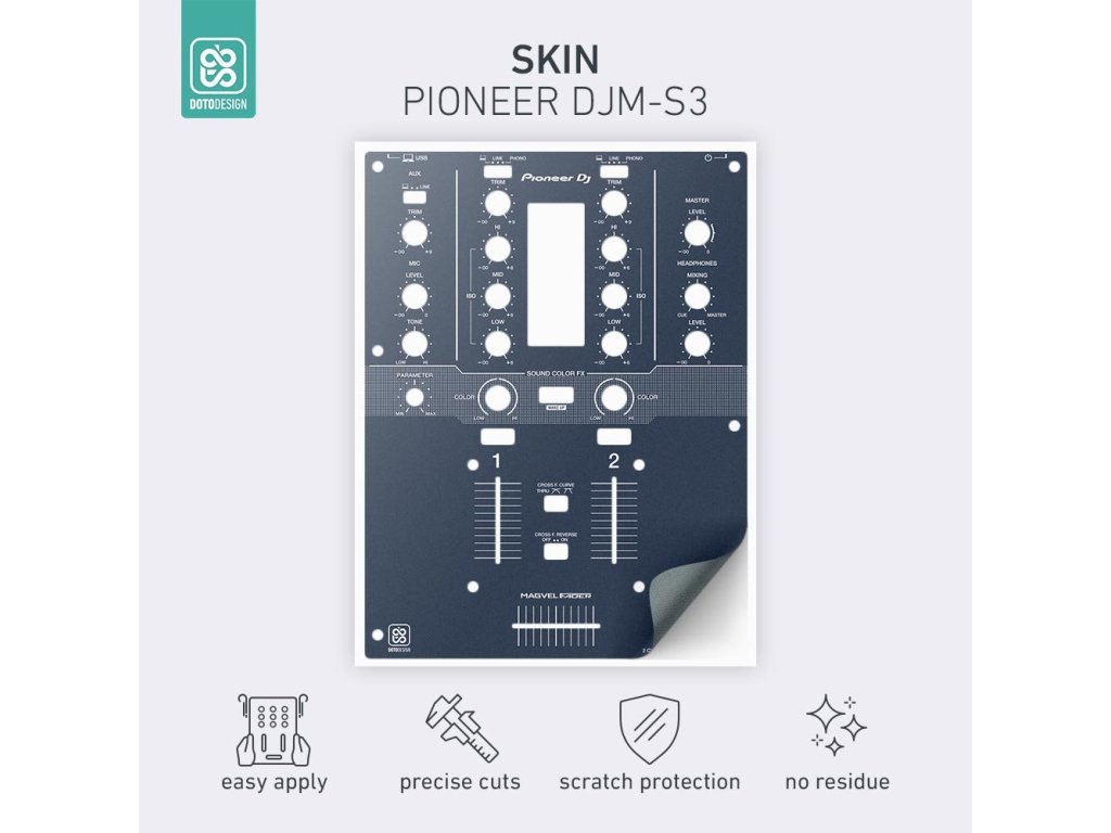 Naklejka na mikser Pioneer DJM-S3 w wersji FULL COLORS, kolor midnight blue (północny niebieski).